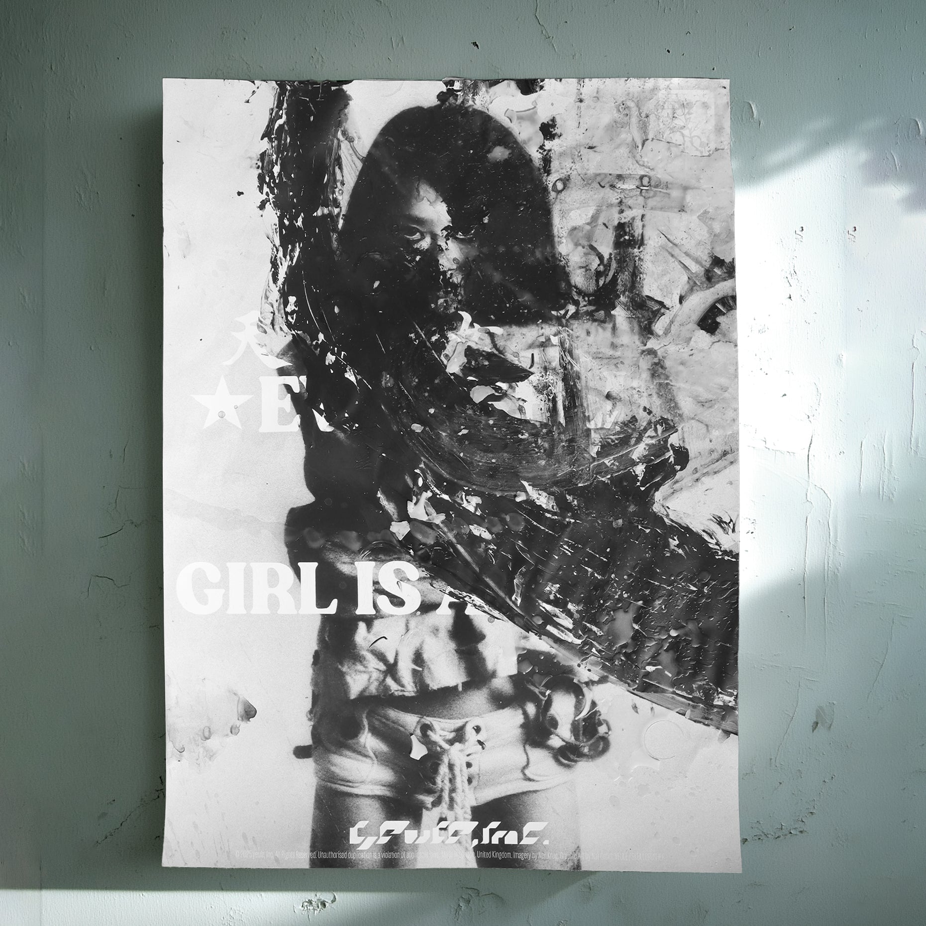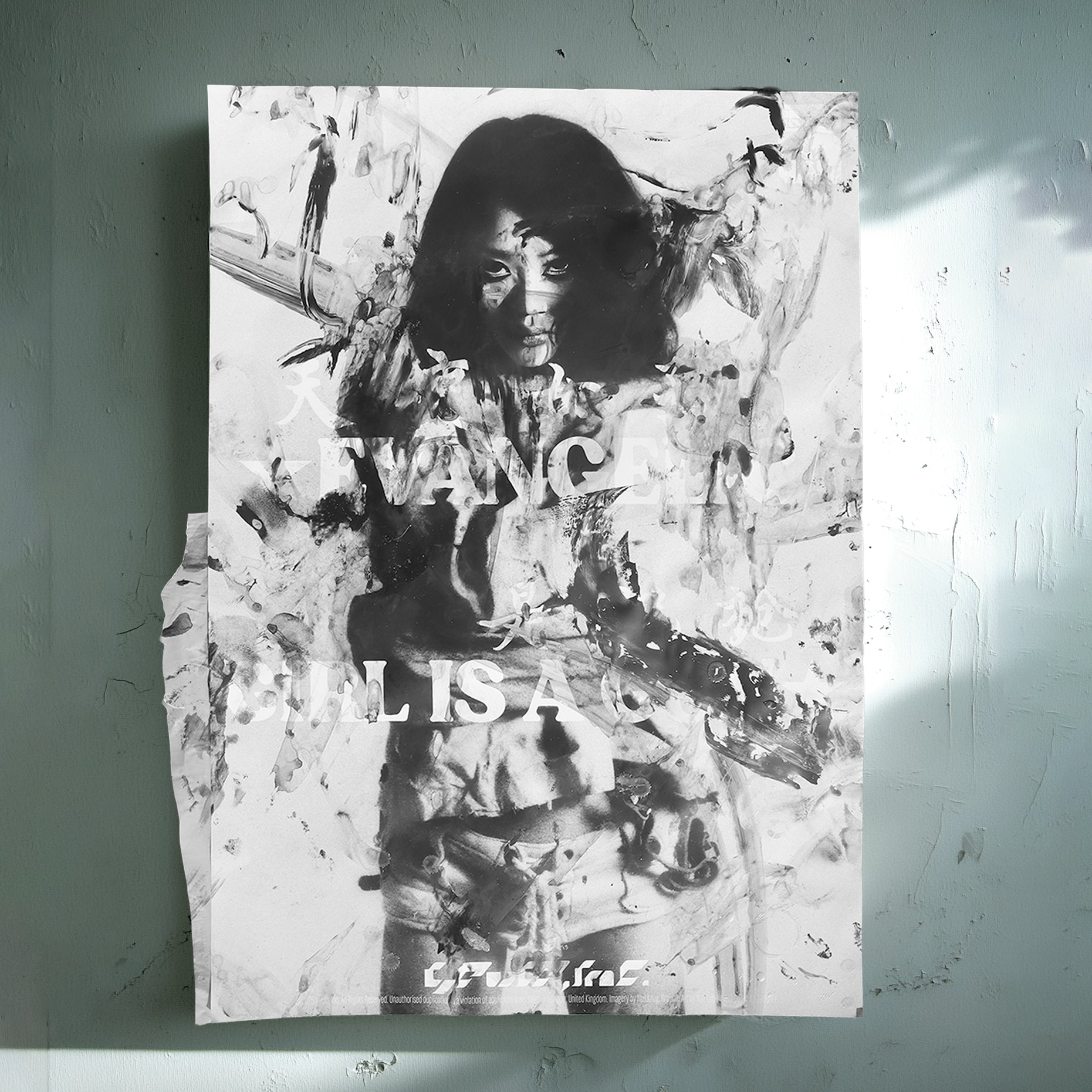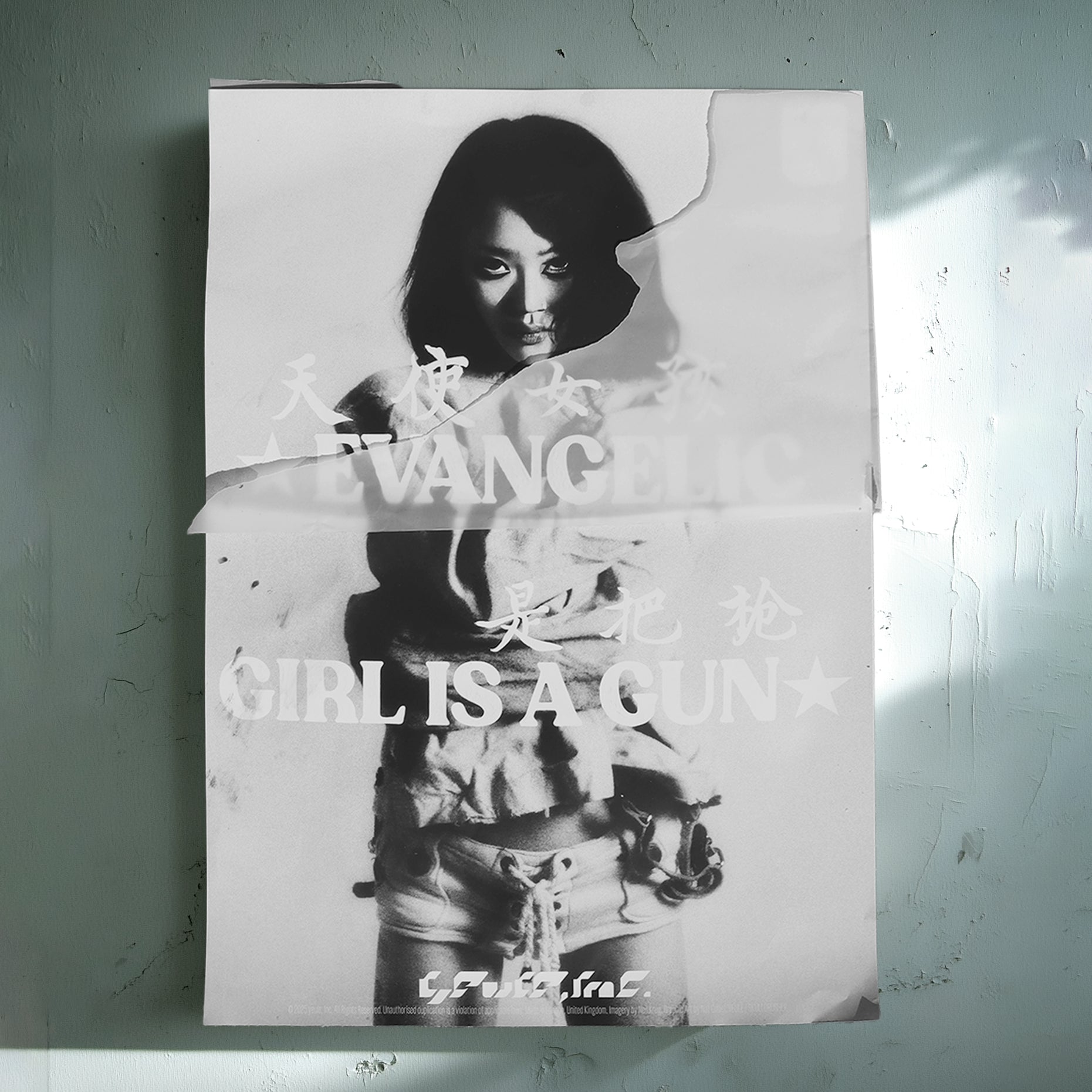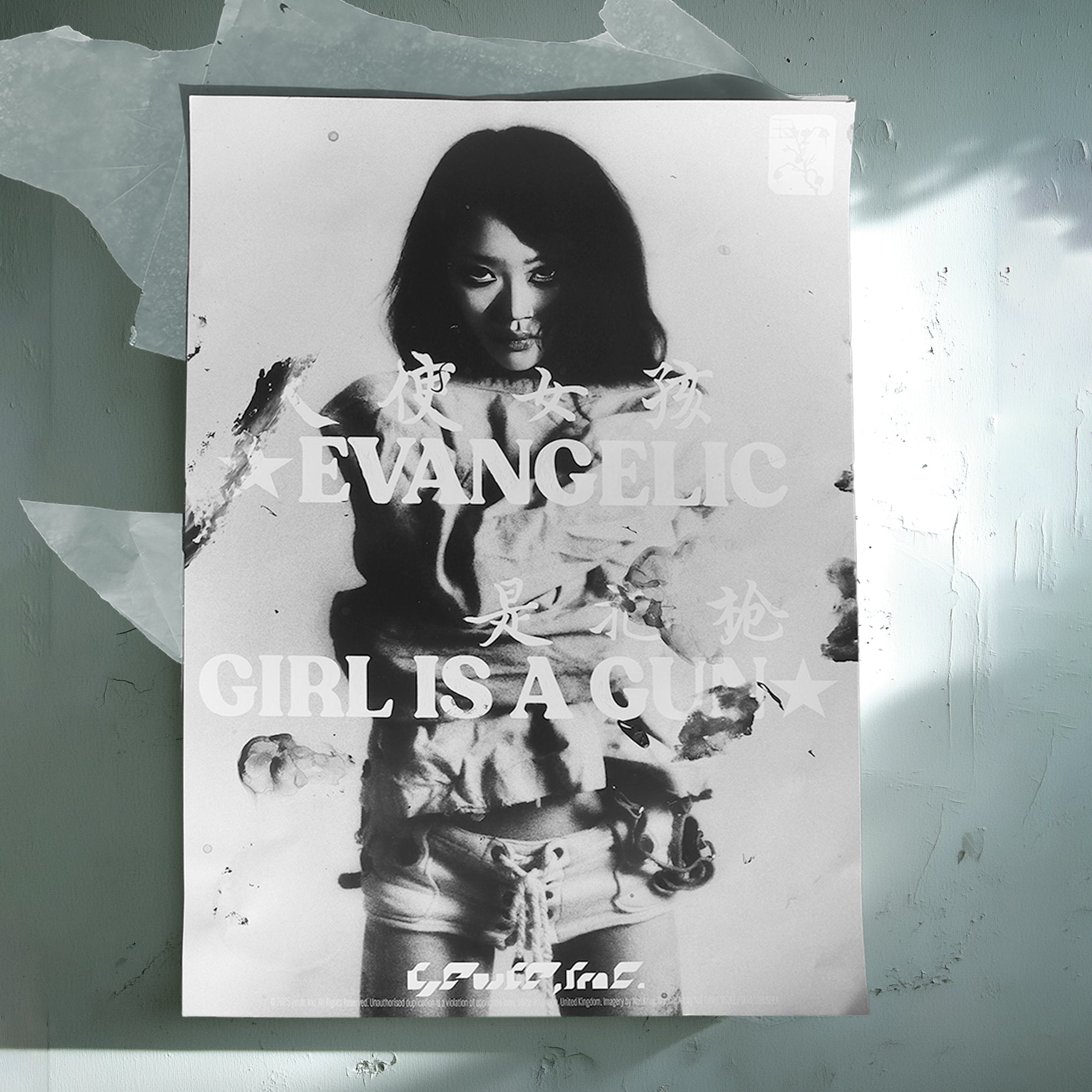 The original 'Skullcrusher' print was released as promotional material and sold as merchandise for Ćmiel's music project, 'yeule'. During the official album rollout of yeule's 4th studio album 'Evangelic Girl is a Gun' (Ninja Tune Records - London, UK), the Evangelic Girl is a Gun era's imagery had its debut for the first time. The poster depicts the institutionalised artist, staring sharp through the lens, cutting through the paper where it holds form.