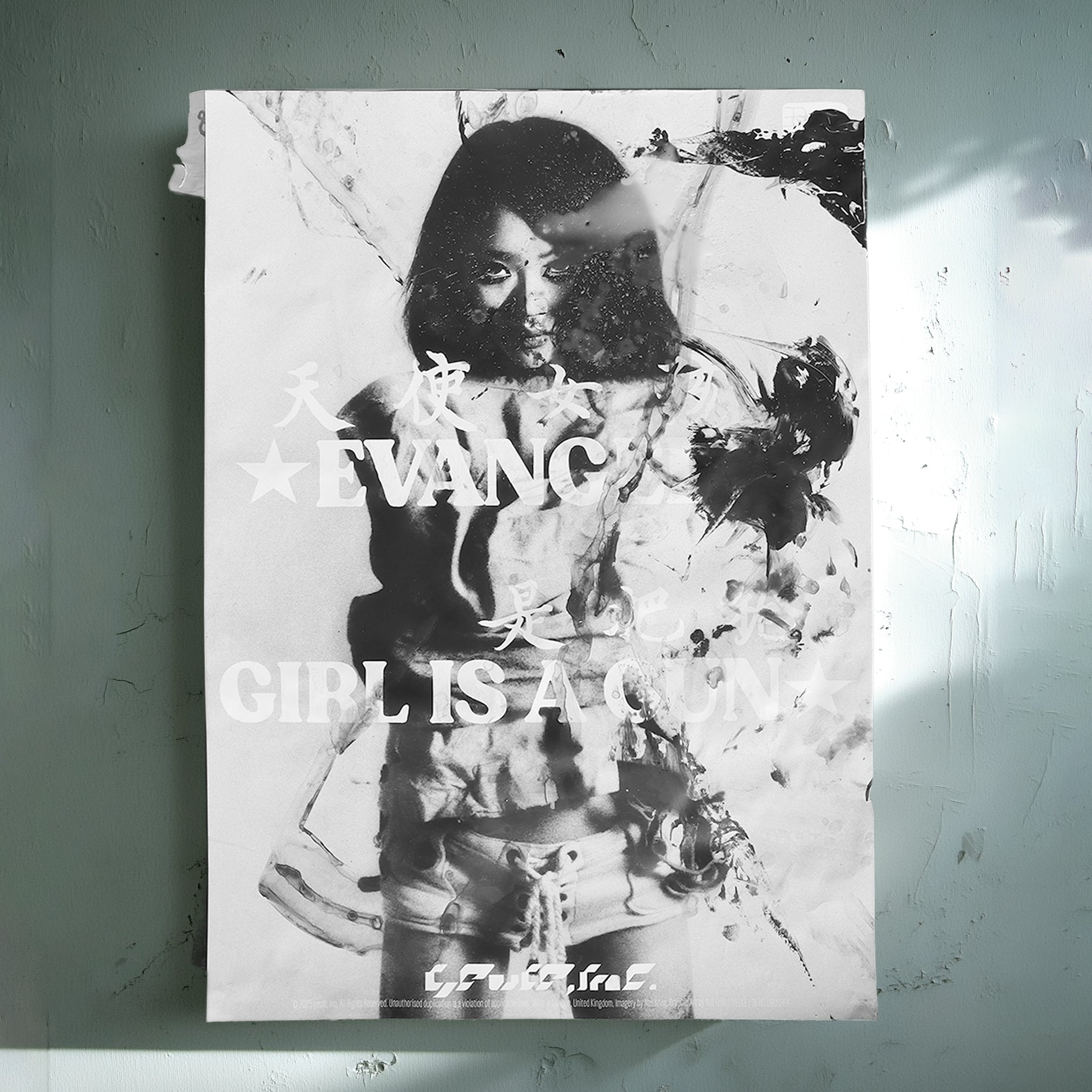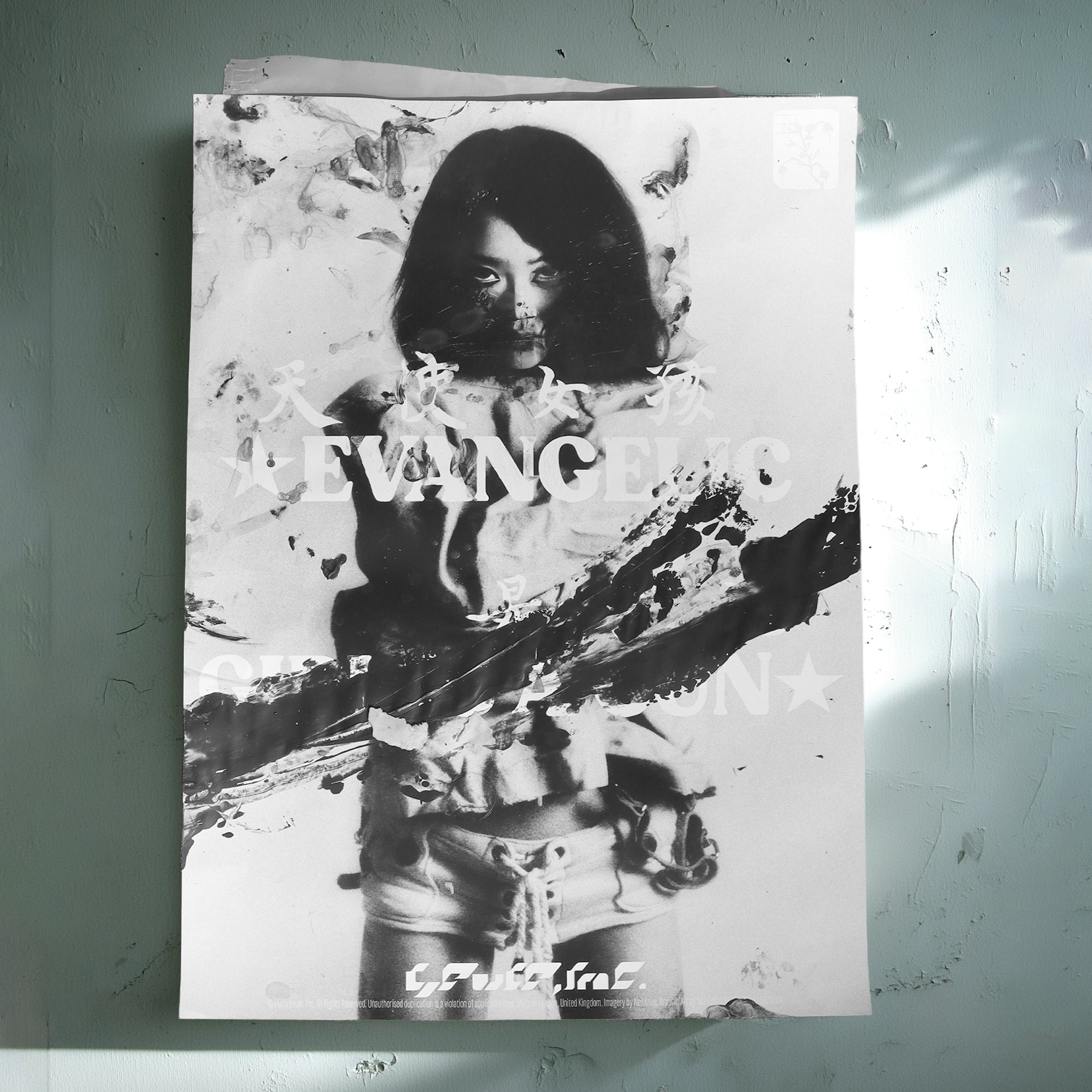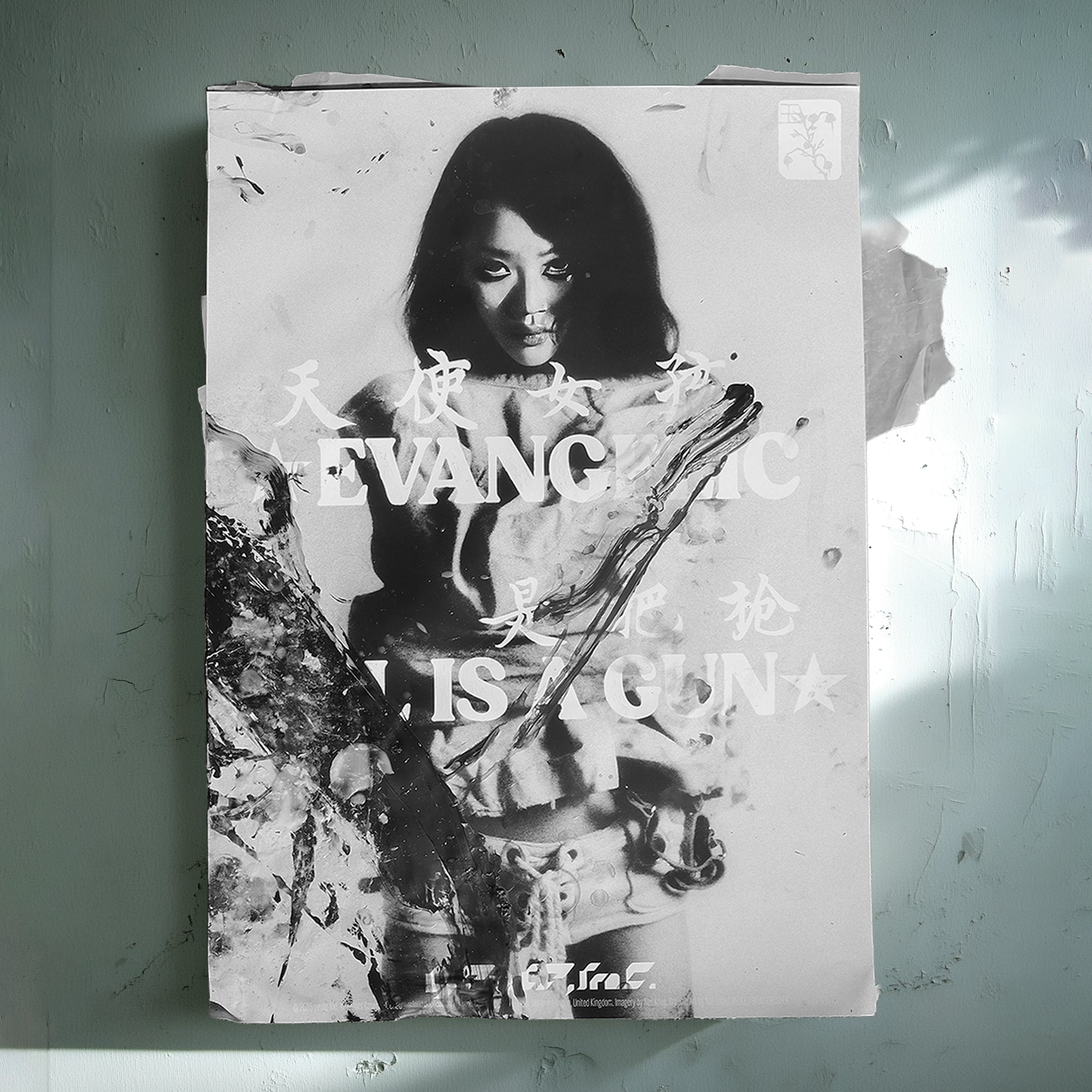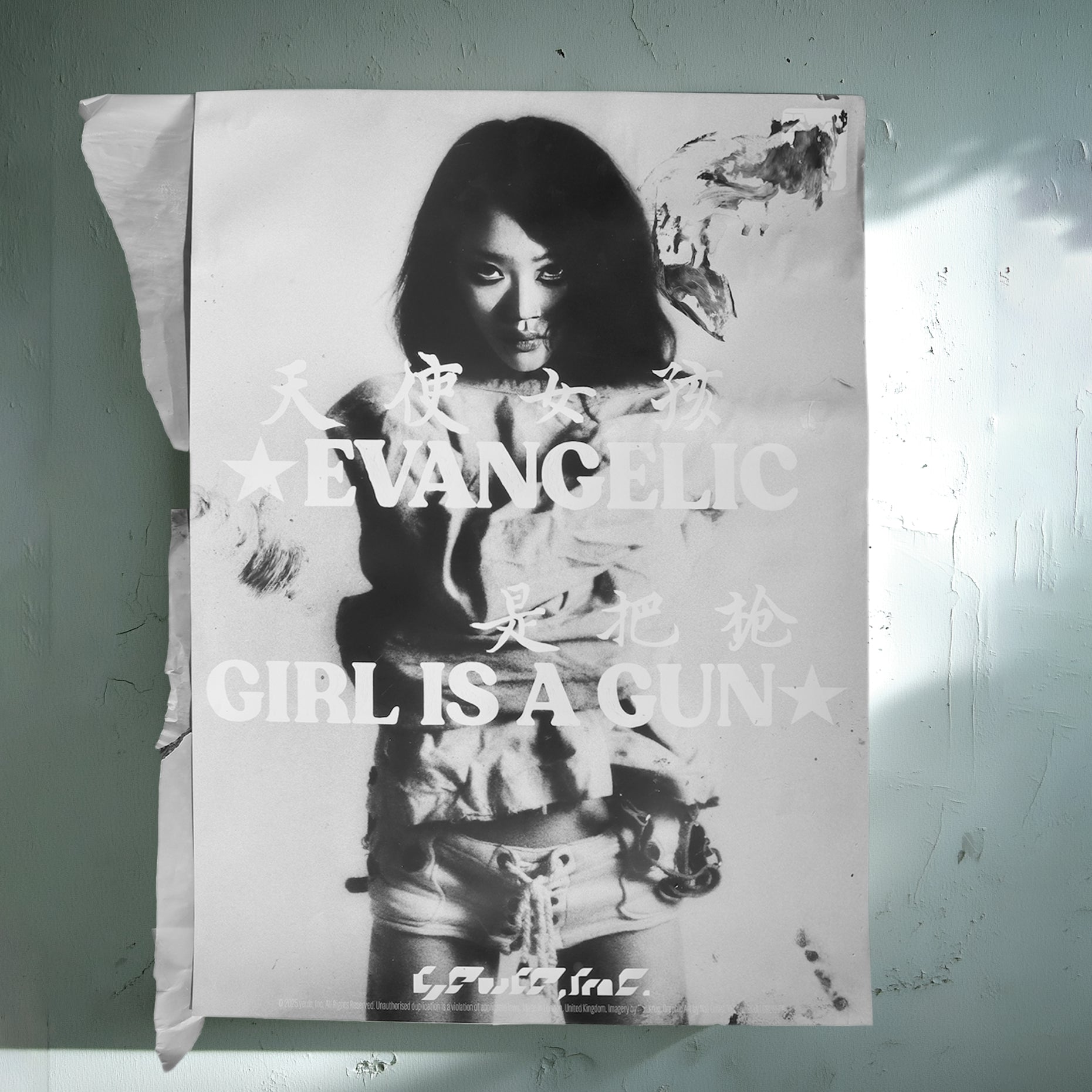 The original 'Skullcrusher' print was released as promotional material and sold as merchandise for Ćmiel's music project, 'yeule'. During the official album rollout of yeule's 4th studio album 'Evangelic Girl is a Gun' (Ninja Tune Records - London, UK), the Evangelic Girl is a Gun era's imagery had its debut for the first time. The poster depicts the institutionalised artist, staring sharp through the lens, cutting through the paper where it holds form.
